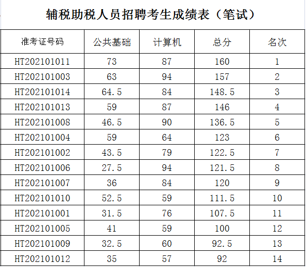 在太和縣稅務局等有關部門的監(jiān)督領導下 ,招聘筆試工作圓滿結(jié)束,現(xiàn)將考生筆試成績予以公示。如有異議,請電話咨詢。