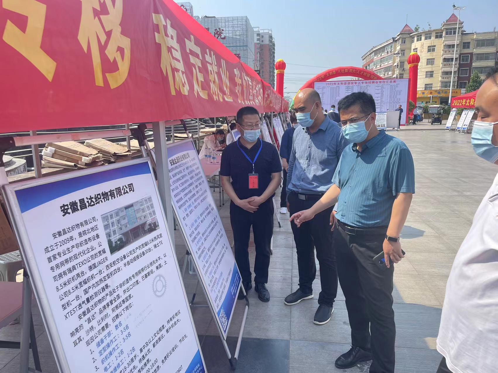 ▲太和縣人社局杜奎局長與招聘企業(yè)負責人進行交流